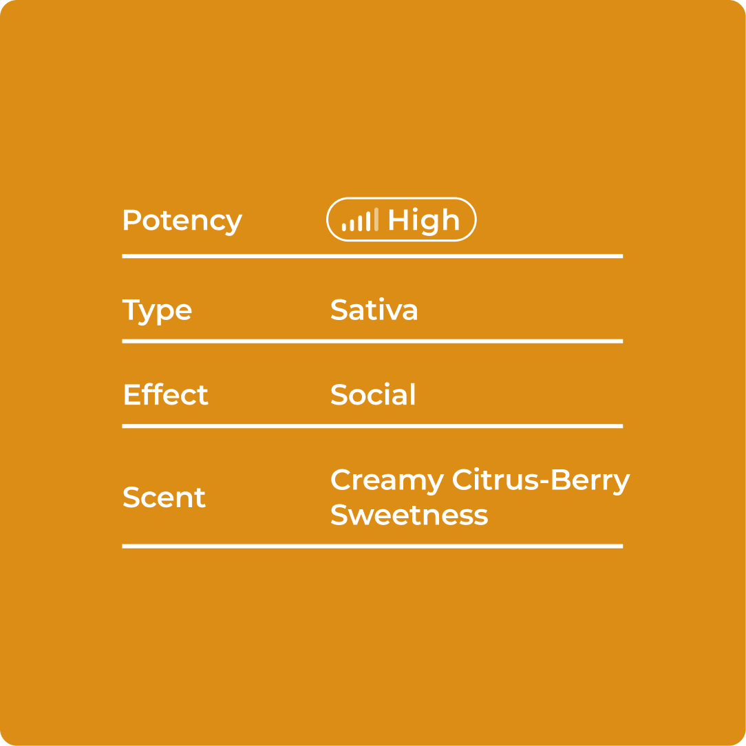 Perfect for connoisseurs seeking exquisite quality and those looking to ignite passion during intimate moments, this hybrid strain promises a journey of euphoria, confidence, and relaxation.