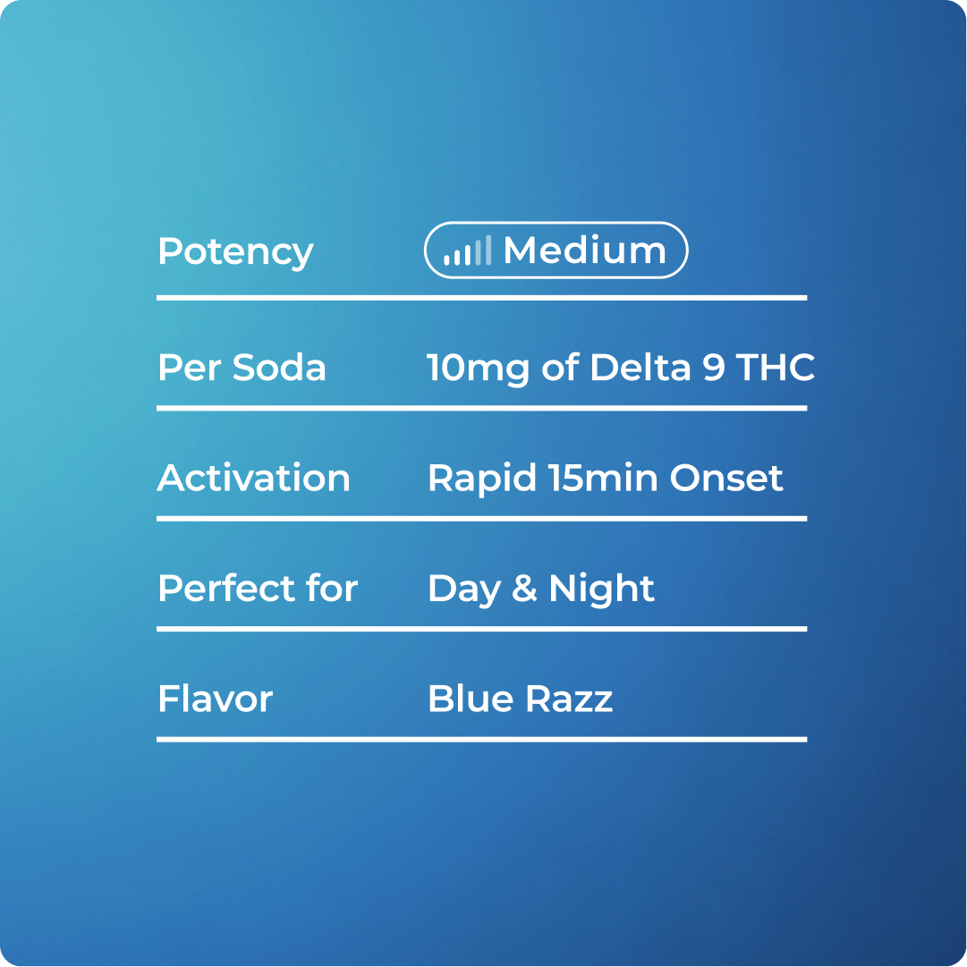 Carbonated RO Water, Natural Flavor, Citric Acid, Natural Color (Spirulina), Acacia Gum, Malic Acid, Tartaric Acid, Sucralose, Salt, Acesulfame Potassium, Hemp-Derived Delta 9 THC