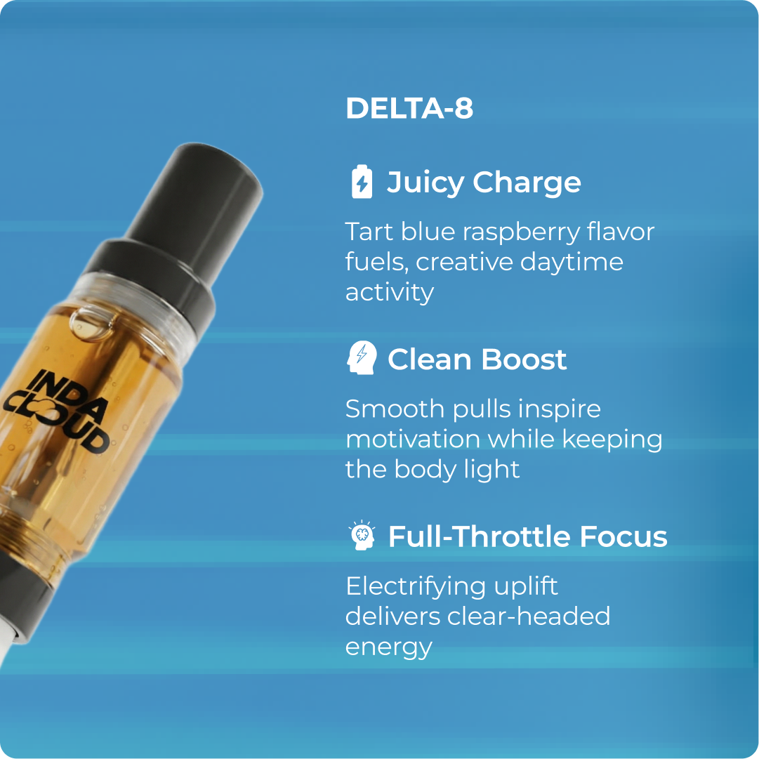 Bold blue-raspberry flavor meets sharp, uplifting Delta 8. Blue Razz Kush delivers energizing clarity and focused buzz in a seamless 3‑gram cartridge experience.