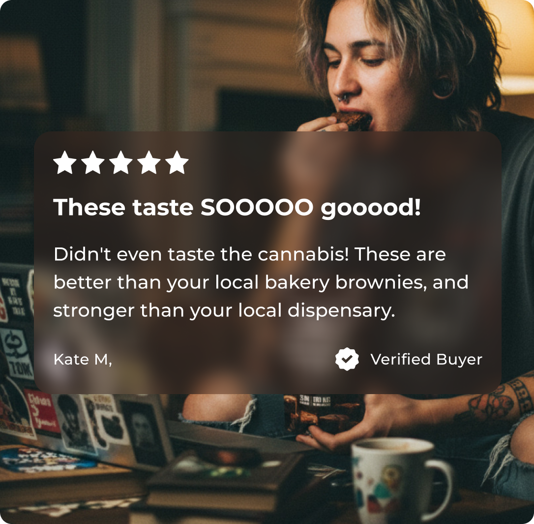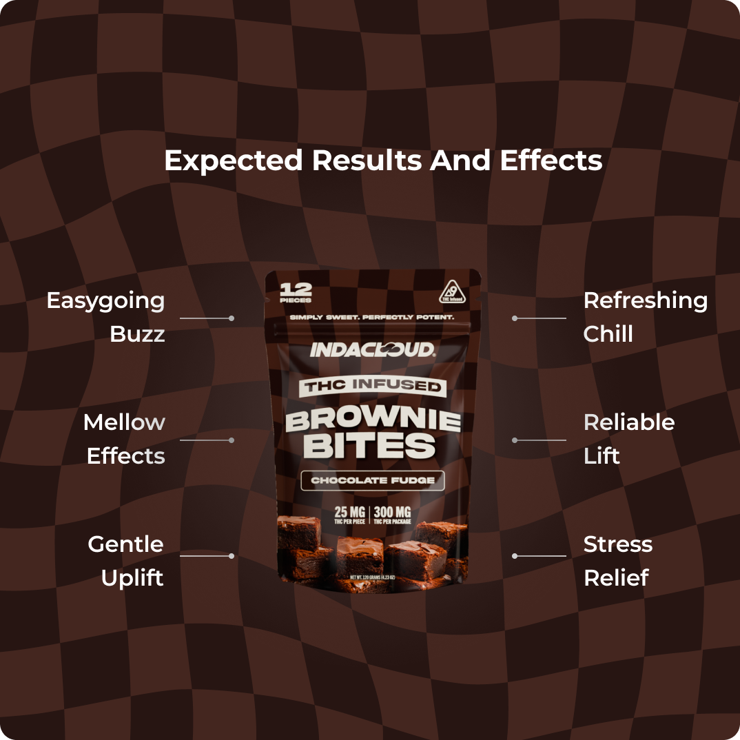 Rich, fudgy brownie bites dosed to delight, crafted to melt stress away and sparks relaxation with every chewy bite.
