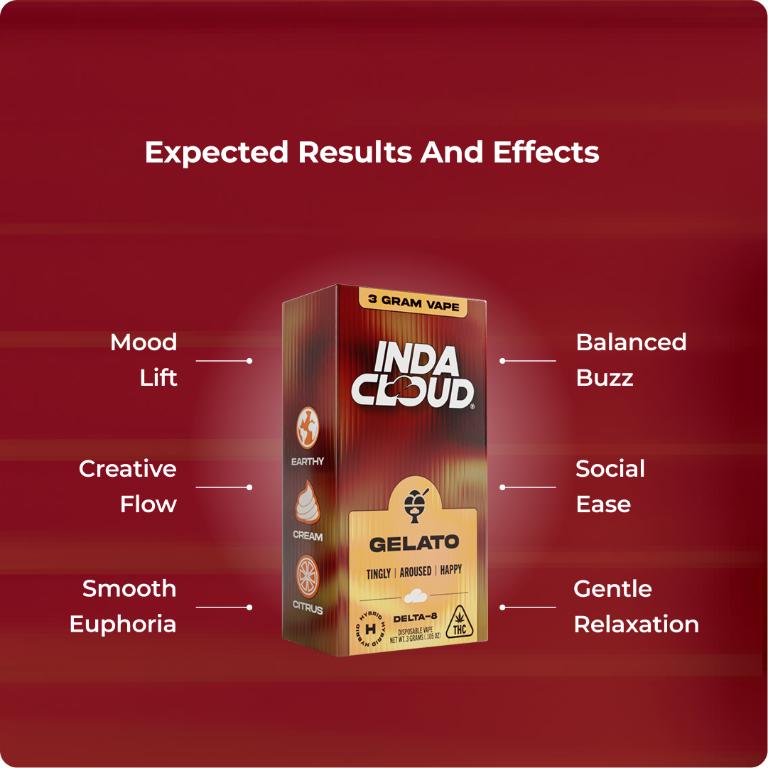 Sweet citrus and creamy dessert notes combine with a balanced Delta 8 experience as Gelato 33 brings uplifting quality, mellow relaxation, and juicy flavor in a sleek, 3g vape.