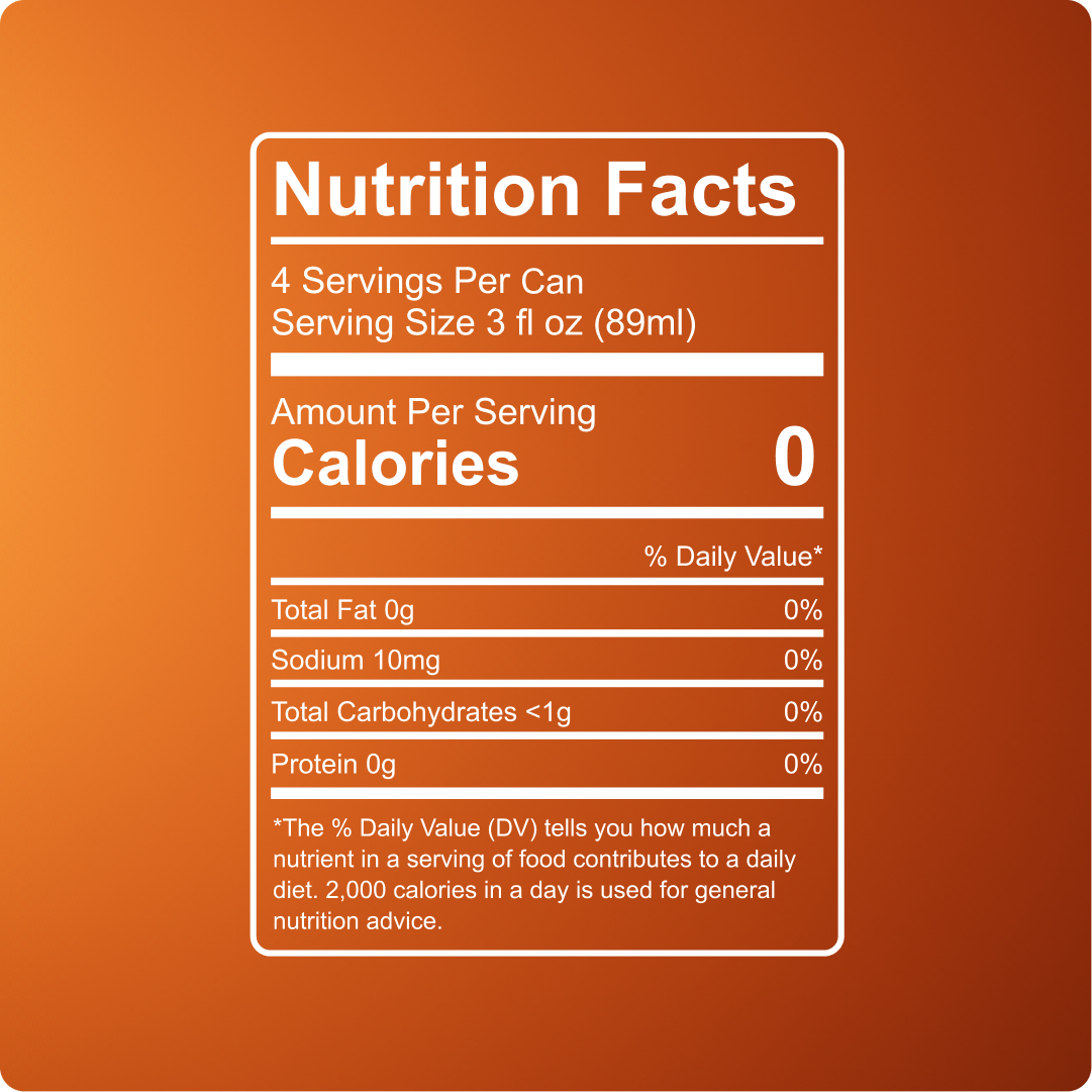 Carbonated RO Water, Natural Flavor, Acacia Gum, Tartaric Acid, Citric Acid, Phosphoric Acid, Sucralose, Salt, Hemp-Derived Delta 9 THC