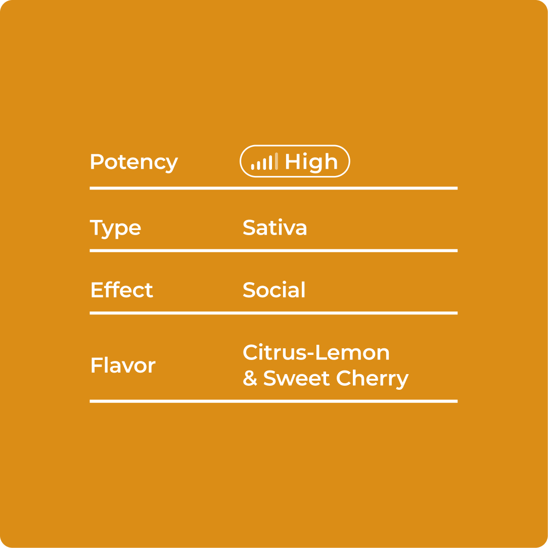 Sweet cherry and lemon notes meet your mellowest calm. Lemon Cherry Gelato delivers mood elevation, creative ease, and smooth citrus berry flavor in every puff.