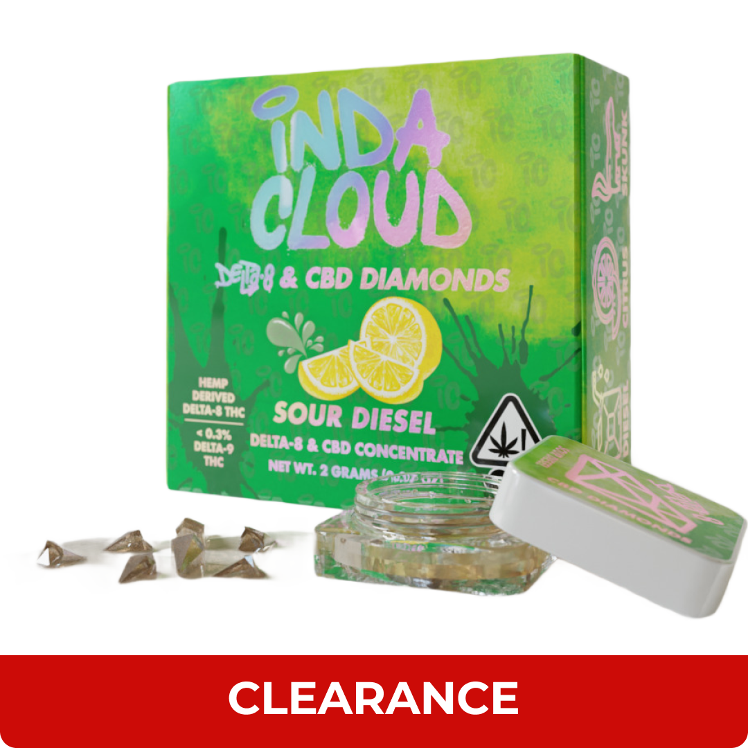 Sour Diesel Delta 8 Diamonds is a unique and premium CBD product Indacloud HQ offers. It is a blend of CBD and Delta 8 concentrate, referred to as "diamonds," suspended in a terpene-rich solution known as "sauce." Unlike regular CBD products, which primarily contain CBD isolate, or broad-spectrum CBD, Sour Diesel Diamonds & Sauce combines the benefits of CBD and Delta 8, offering a more potent and versatile experience. The CBD is extracted and isolated from intoxicating elements, ensuring it retains the non-psychoactive properties, while the Delta 8 provides a mild psychoactive effect. This combination allows users to experience the therapeutic effects of CBD alongside the subtle euphoria and relaxation induced by Delta 8, creating a well-rounded and enjoyable experience for consumers.