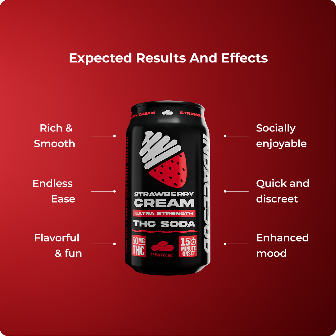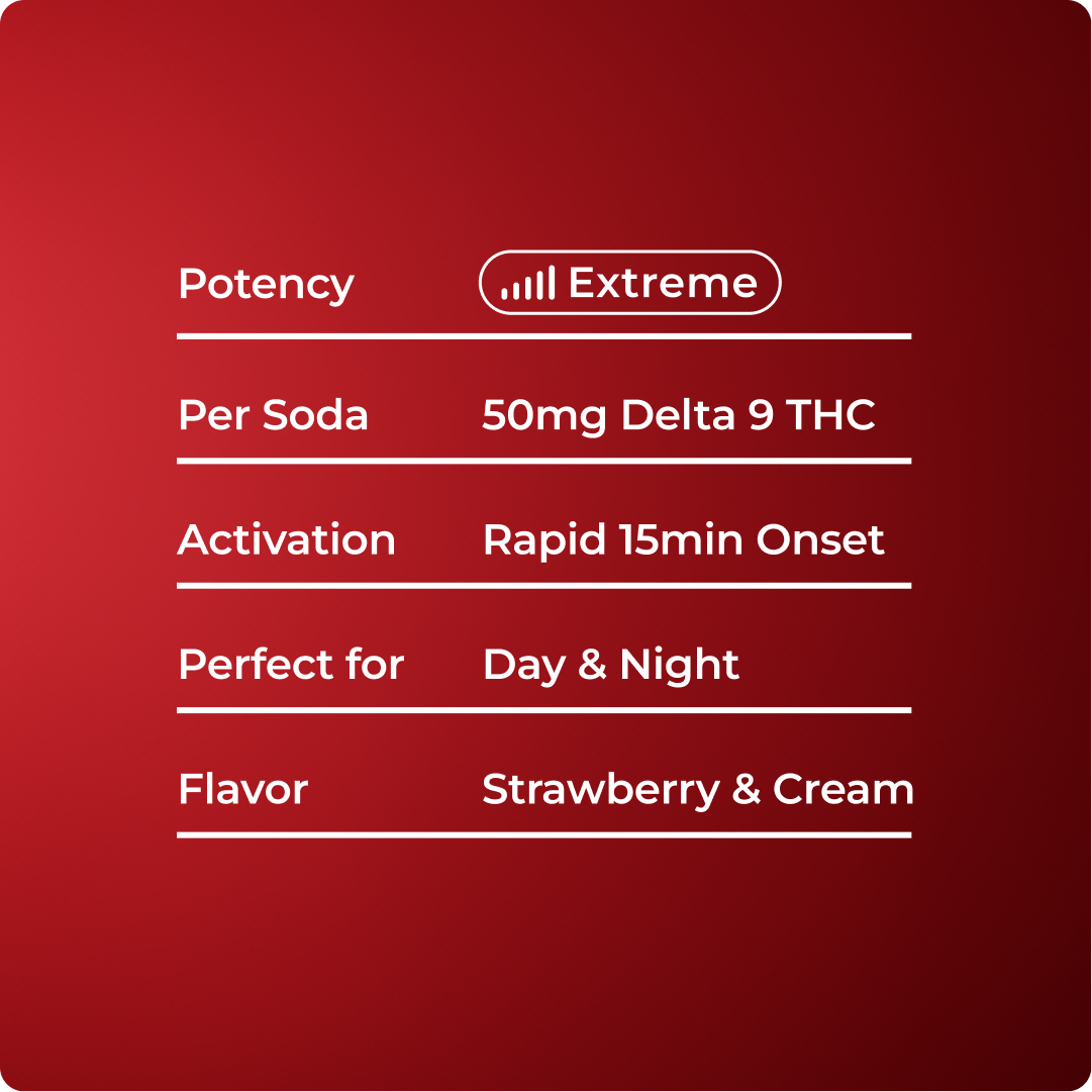 Lush strawberries-and-cream with a powerful 50mg lift. Smooth taste, steady calm, and built for seasoned consumers seeking smooth satisfaction.